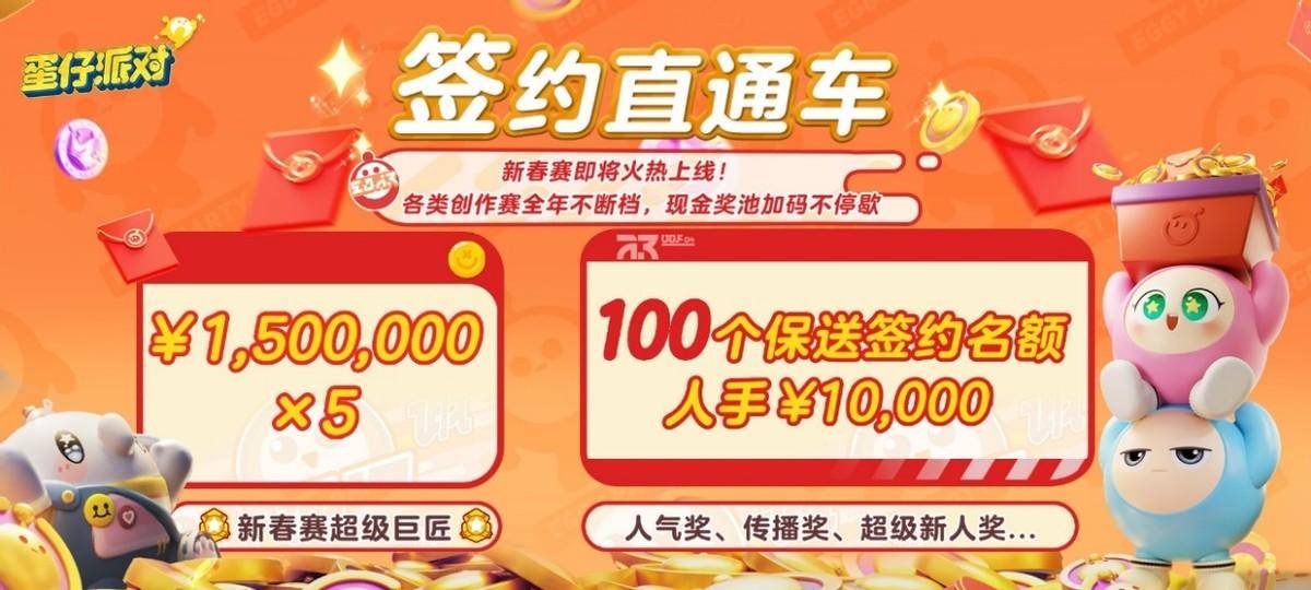 而在此次「春季全民创作赛」中,《蛋仔派对》官方更是大手笔豪掷1500万和千万蛋币激励更多用户加入UGC创作中。这次创作赛最终将诞生 5 位超级巨匠,每人独享 150 万元现金大奖,还能解锁“匠星计划”专属权益。与此同时还将有100位用户荣获工坊巨匠称号,不仅能获得万元奖金还能升级成为官方签约作者,让收益最大化。