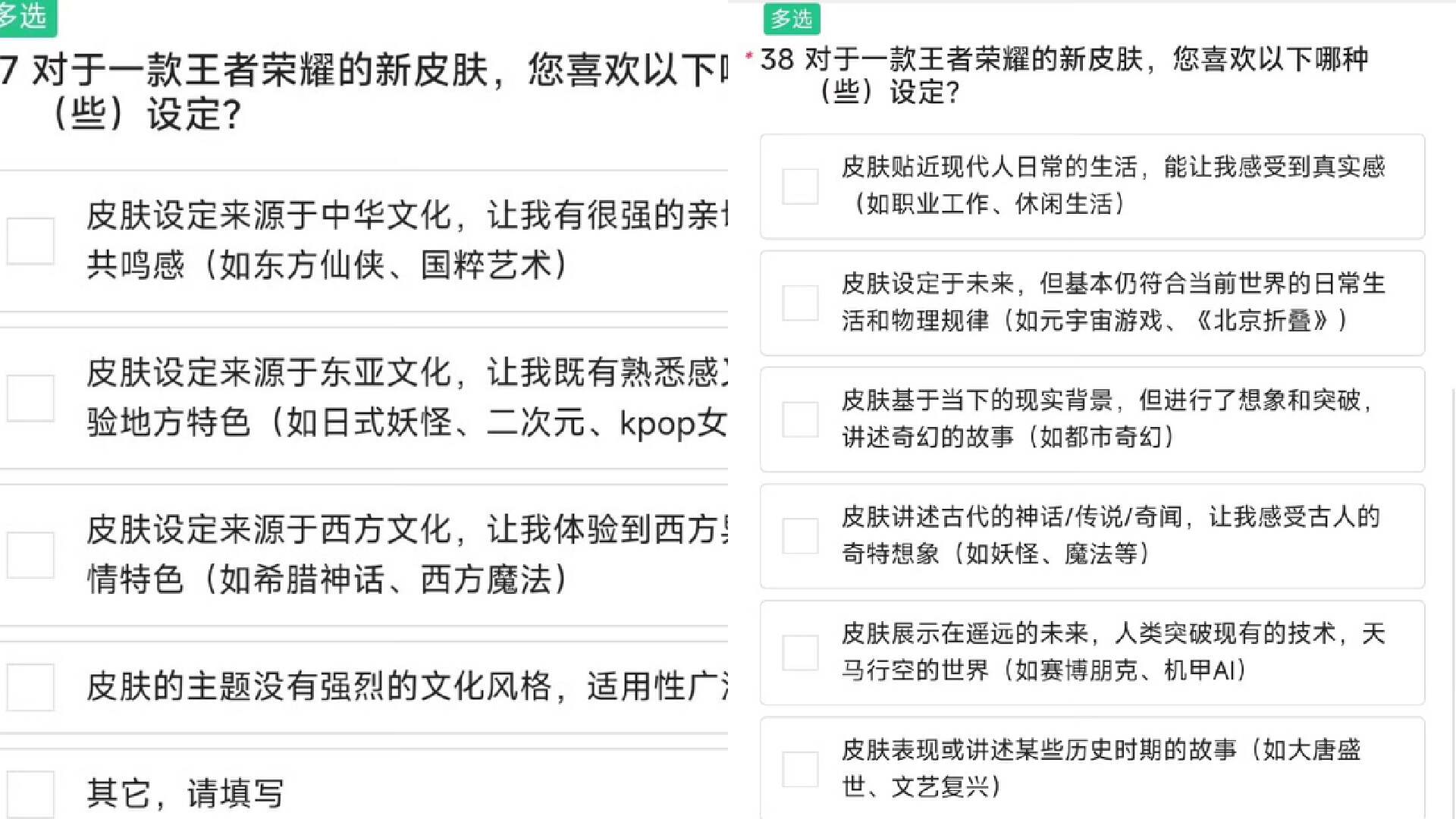 再来就是王者荣耀还在调查新皮肤主题,官方可能比较喜欢仙侠、国粹等方面的皮肤。当然二次元、西方魔法等类型的皮肤,其实官方也一直都在考虑。