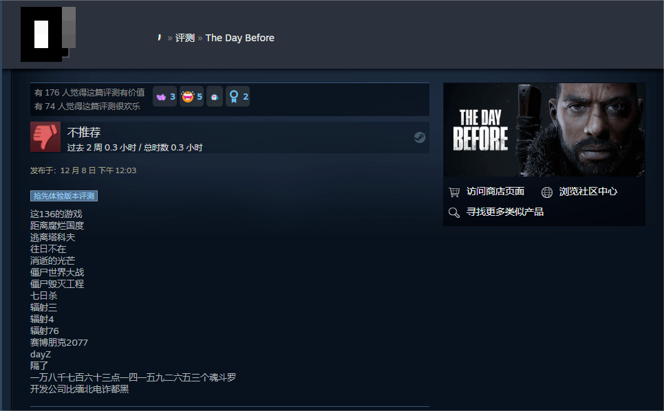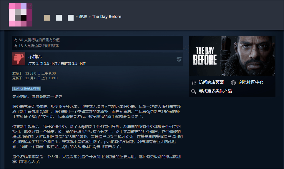 12月8日,一年一度的玩家盛会,游戏奥斯卡TGA开幕。在无人知晓的角落,Fntastic悄咪咪上架了《浩劫前夕》。一跳再跳,共计跳票五次的《浩劫前夕》终于在TGA当天开启了抢先体验。没想到,当TGA上《博德之门3》《塞尔达传说:王国之泪》向世界展示“第九艺术”的瑰丽时,Fntastic工作室证明了他们的核心技术是“画大饼”和“写BUG”,以一种“琴棋书画它打牌最强”的黑色幽默,把玩家们的期待付之一炬。《浩劫前夕》的实际情况和之前宣传片的内容相比,不能说一模一样,只能说大相径庭。直接看图吧。