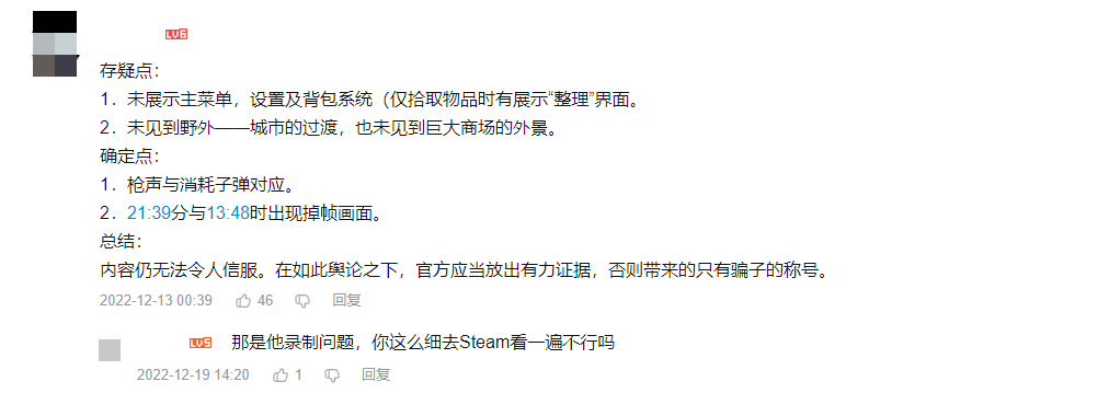 2023年2月,就在叕一次宣布跳票后,Fntastic释出了新的“实机演示”,据Reddit上一位名为PatFury的网友的比对来看,该实机演示“技术上”完美“致敬”了《最后生还者》《使命召唤》等游戏镜头。