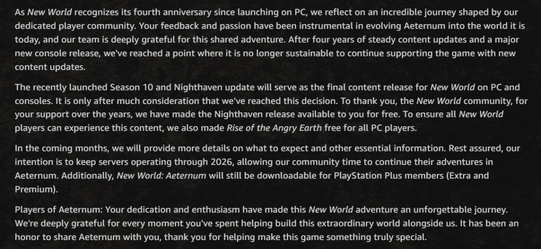 这三个游戏中,《Breakaway》因为公测表现过烂,还没正式上线便被腰斩;《Crucible》在2020年上线5个月后匆匆下架,留下一地鸡毛;表现最好的《New World》,也伴随着本次裁员宣布了将在明年停止运营。