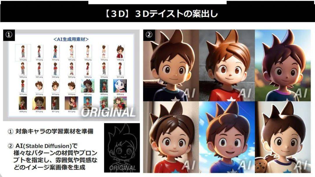 在这份讨论AI产权界定的讨论会材料里,制作过《雷顿教授》《妖怪手表》和《二之国》等知名游戏的开发商LEVEL-5使用AI的场景非常丰富,而且是以一个正面案例的形象出现在了这次会议中。