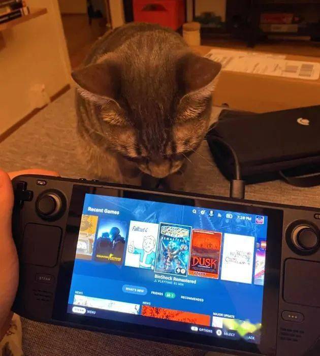 去年有网友在Reddit上发帖称,他非常喜欢Steam Deck散热排出的气体,这种特别的味道不仅让他非常喜欢,就连他的猫也爱在他玩游戏时凑过来闻闻。