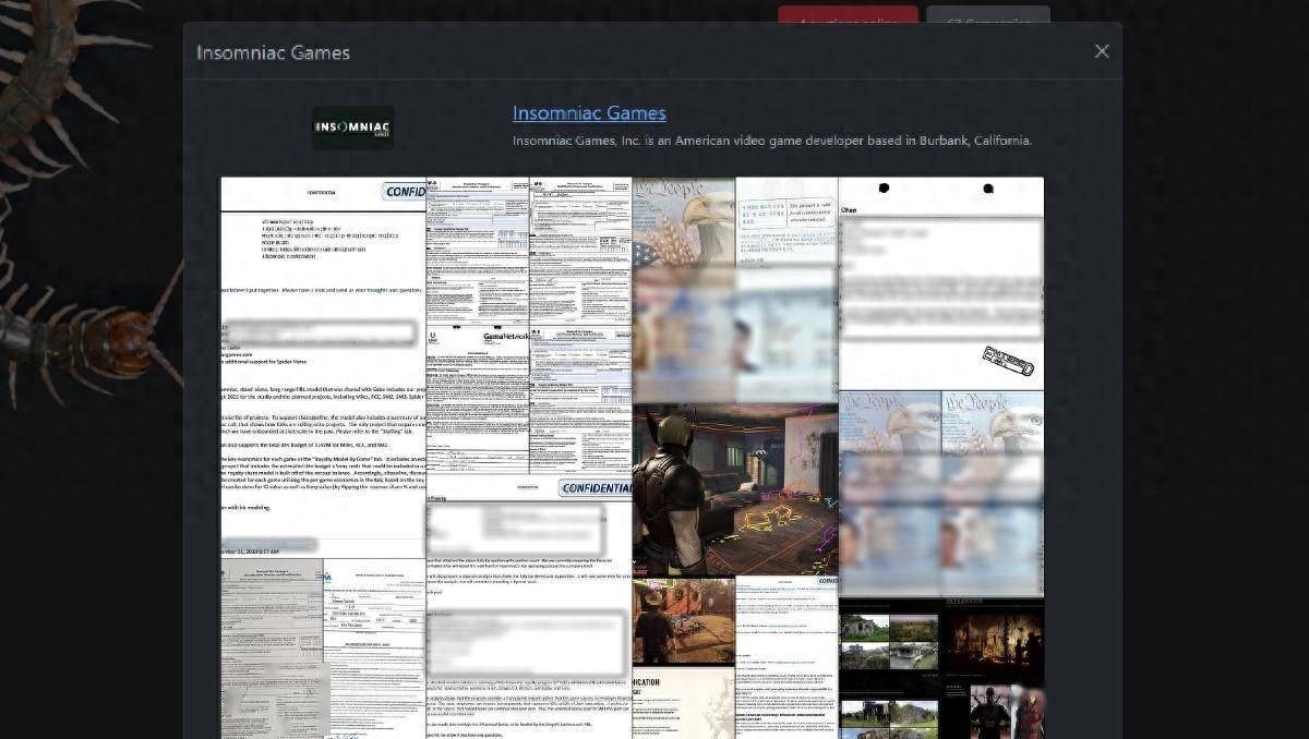 泄露文件来自于黑客组织Rhysida最近的一次勒索软件攻击,Rhysida称获得了Insomniac机密数据,并附上了一张《漫威金刚狼》游戏的角色概念图。