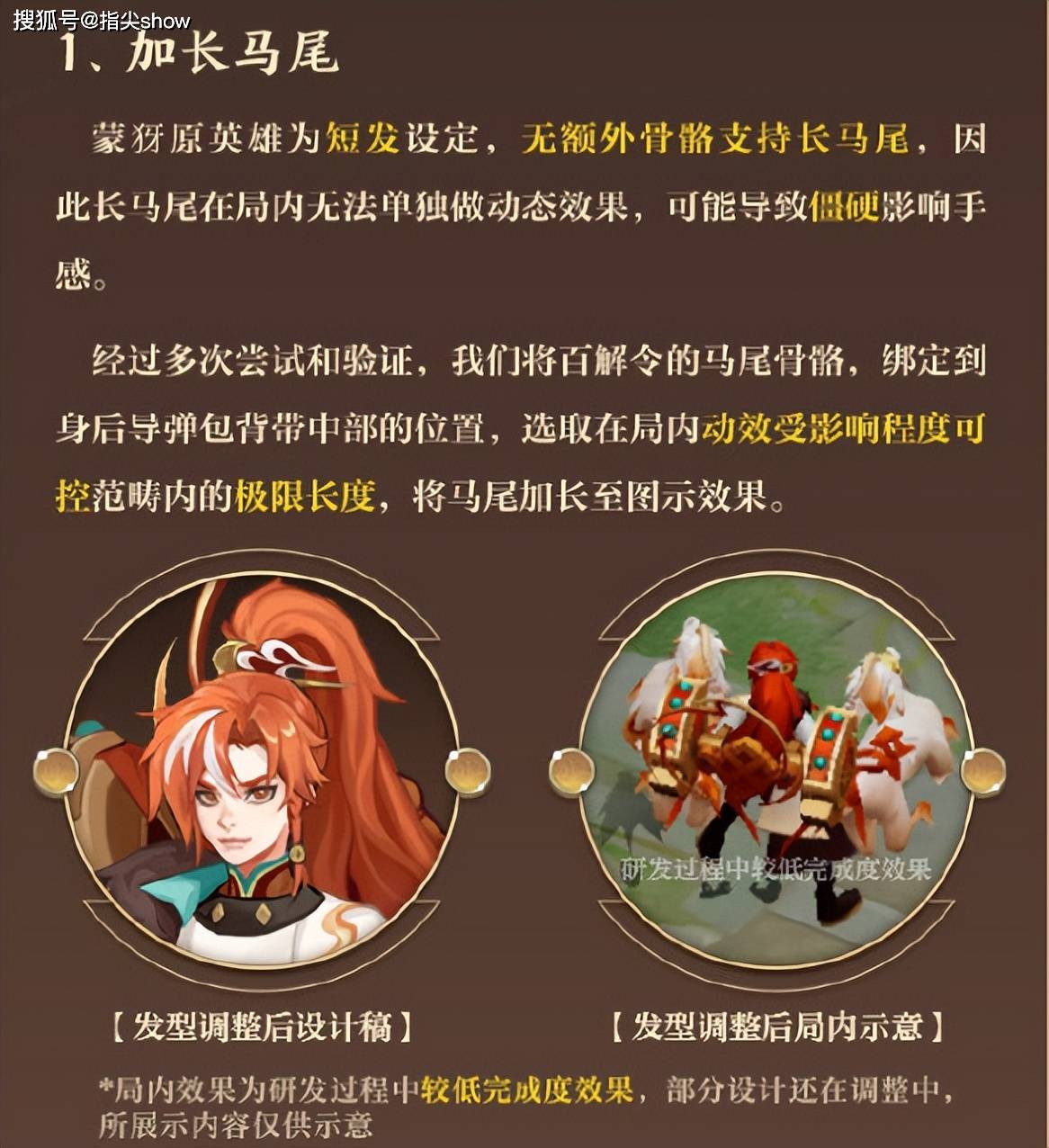 但应玩家要求,以及对原创的尊重,后期使用了其他的方式将长马尾做了出来。