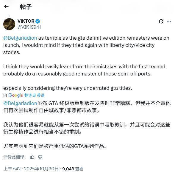 Grove Street Games此前曾负责《GTA:三部曲-终极版》,但该作在发售初期因技术问题和视觉表现受到广泛批评。此后,Rockstar将后续修复工作交由Video Games Deluxe(后更名为Rockstar Australia)接手。