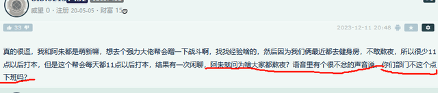 这件事情,发生在“烟雨江南”服务器的某帮会。有两个萌新加入一个帮会后,发现这个帮会的人每次一起玩都是11点以后。有一次打副本时,萌新问为啥大家都得熬夜,帮会里突然有人说了句,难道你们部门不是这点下班?