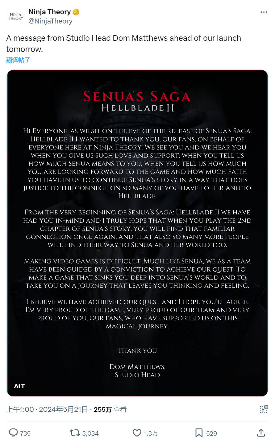 此外,忍者理论目前还在积极开发一款名为“Project Mara”的实验性项目,该项目旨在探索心理恐惧在现实世界中的呈现,这一概念最初由已离职的联合创始人Tameem Antoniades在2018年提出。