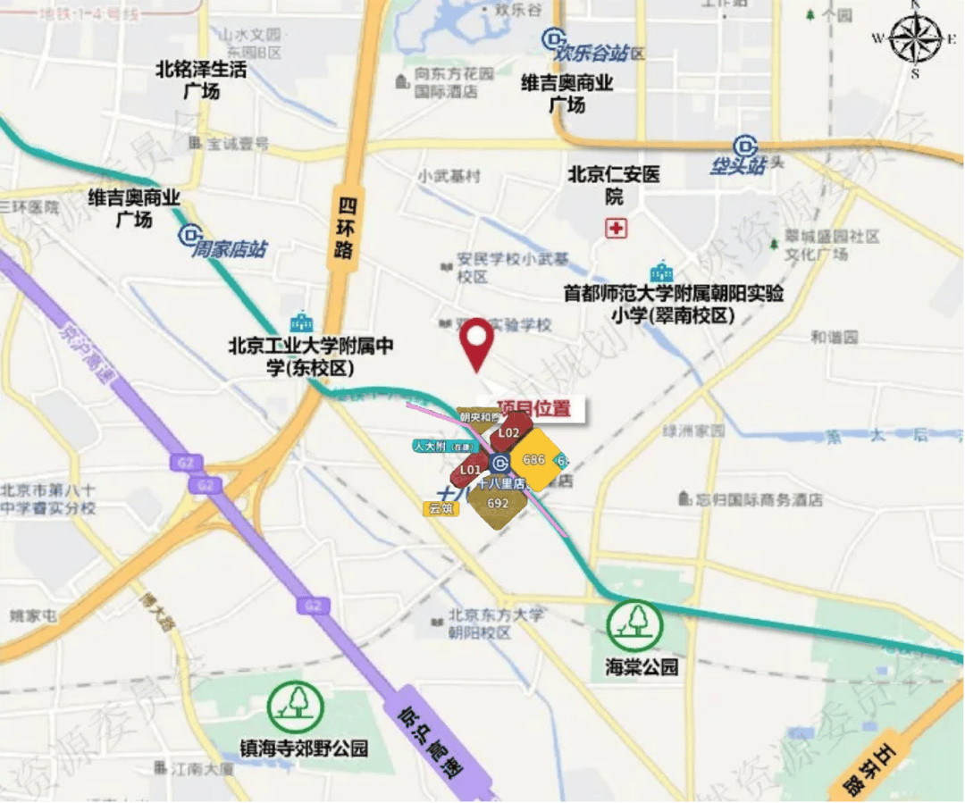 十八里店686地块的位置还算不错,门口就是北京地铁17号线的十八里店站,交通上,距离东四环南路直线距离大约1.5km。