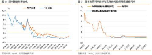 90年代后,日本央行政策利率逐步接近名义零利率。1991年开始,日本央行将贴现率(1995年之前的政策利率是贴现率,1996年后调整为无抵押隔夜拆借利率)从1991年最高6%下调至1995年9月的0.5%。伴随政策利率逐步接近名义零利率,10年国债收益率从1991年初的6.5%左右下行到1995年9月的3%,1年国债收益率从7%下行到0.5%。