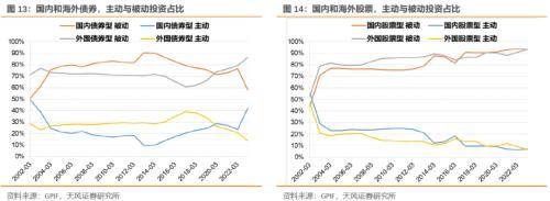 GPI资产配置上总体以被动型为主,在国内/海外、债券/股票资产上均表现出类似特征。