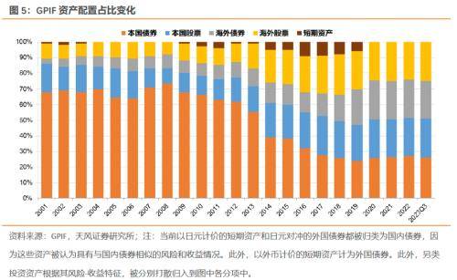 其一,利率下行导致国内债券收益率显著降低,GPIF逐步调低了国内债券的比例,权益占比上升。