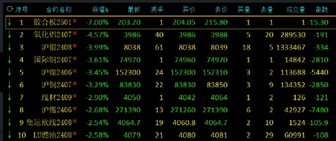 早盘开盘,国内期货主力合约涨跌不一,20号胶(NR)涨近2%,焦煤、焦炭、橡胶、菜粕、丁二烯橡胶(BR)涨超1%。跌幅方面,氧化铝、沪银、沪铜、国际铜跌超3%,沪镍、沪锡跌超2%,沪金、沪铝、烧碱跌近2%,甲醇、沪锌、SC原油、集运指数、碳酸锂跌超1%。