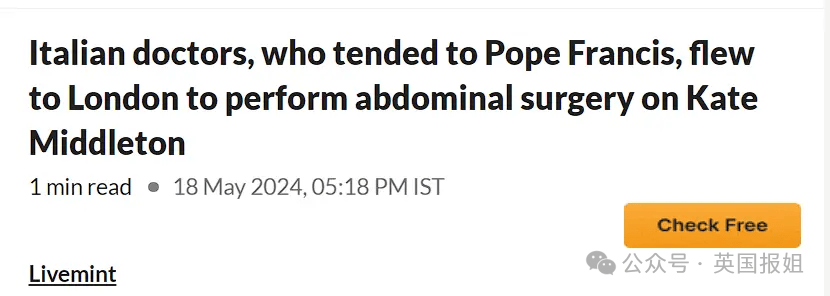 最近,意大利著名杂志《Gente and Bild》声称,凯特王妃在一月份进行的腹部手术是由给教皇做过手术的意大利医生团队主持进行的。