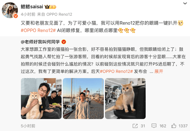 (OPPO Reno系列产品经理鳃鳃saisai透露可以用OPPO Reno12系列把眼睛一键扒开)