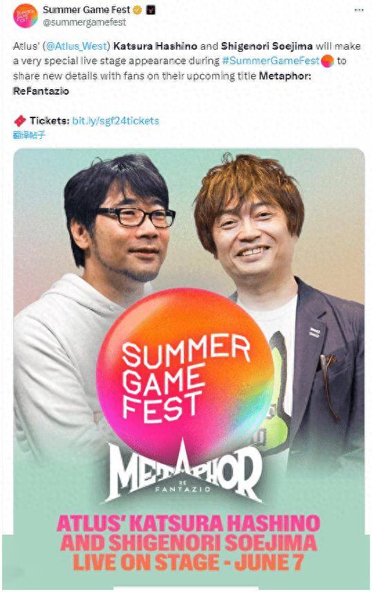夏日游戏节官方消息,游戏总监桥野桂和角色设计师副岛成记将亮相6月8日的展示会,和玩家们分享《暗喻幻想:ReFantazio》的新情报。