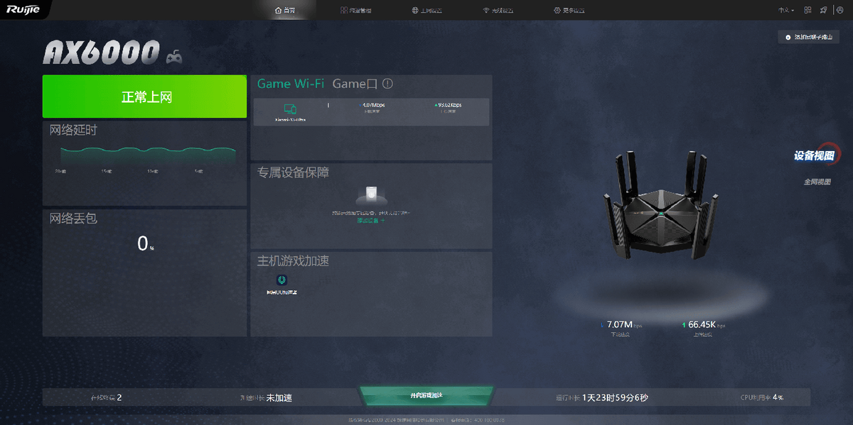 无意间发现这款锐捷天蝎X60 New电竞路由器的网页端也非常强大,有兴趣的同学可以深入了解一下: