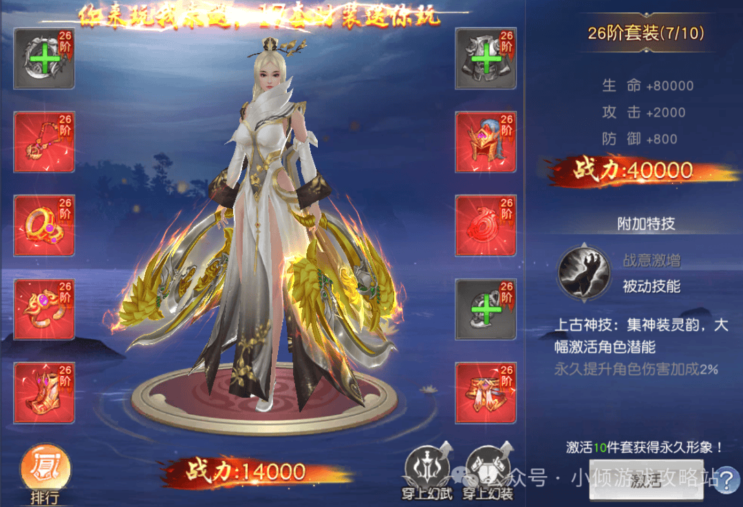 一旦玩家点亮了指定的10件装备,幻装便会永久激活。激活后的幻装不仅为角色带来全新的外观,更能赋予角色强大的能力。这些能力可能包括增加属性加成、提升技能威力、解锁新的技能等,使玩家在战斗中更具优势。