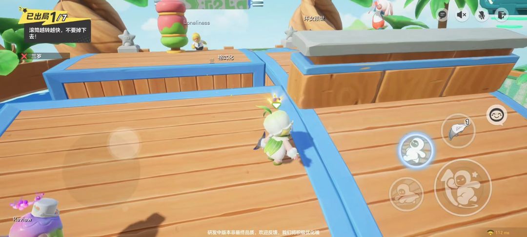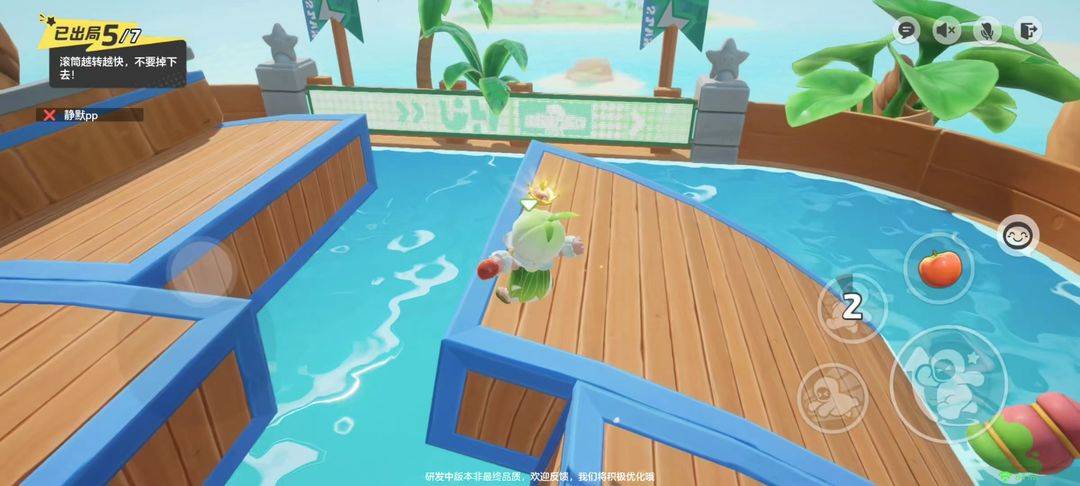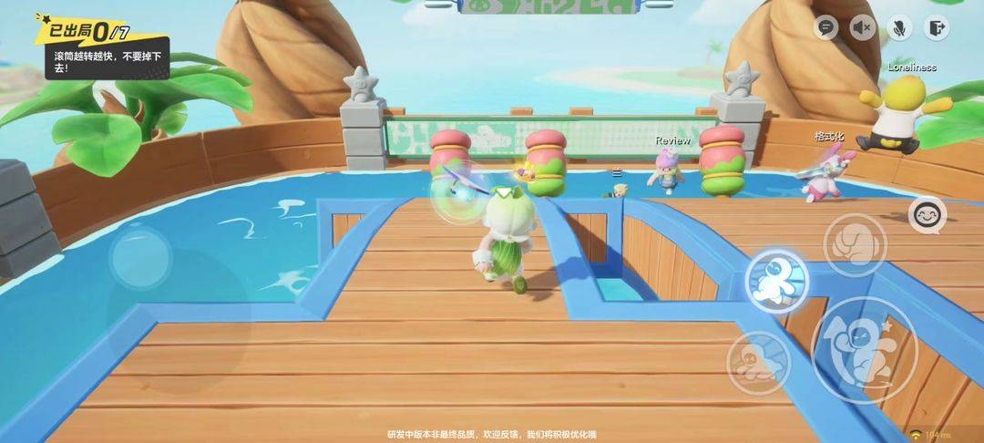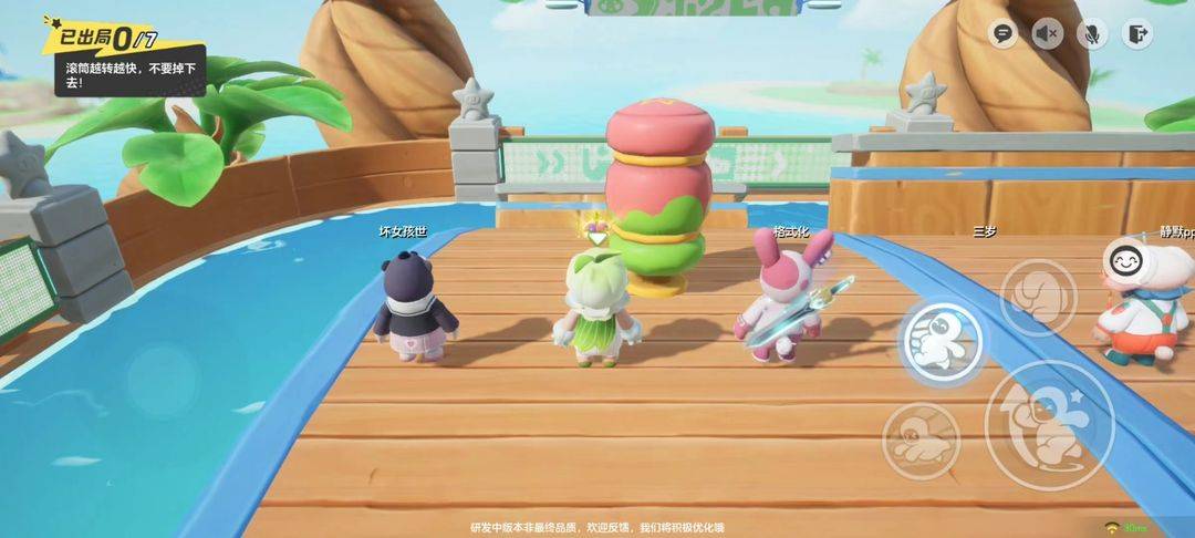 因此,比较中肯的玩法技巧推荐为“站着不动”,以不动应万变。这里所说的站着不动不是希望小伙伴们一动不动,而是希望小伙伴们在看清楚滚筒的陷阱后再进行位移。毕竟从滚筒转动到玩家落水需要一定的时间,玩家只要在该时间内进行位移,就能在极大的程度上能够避开陷阱。