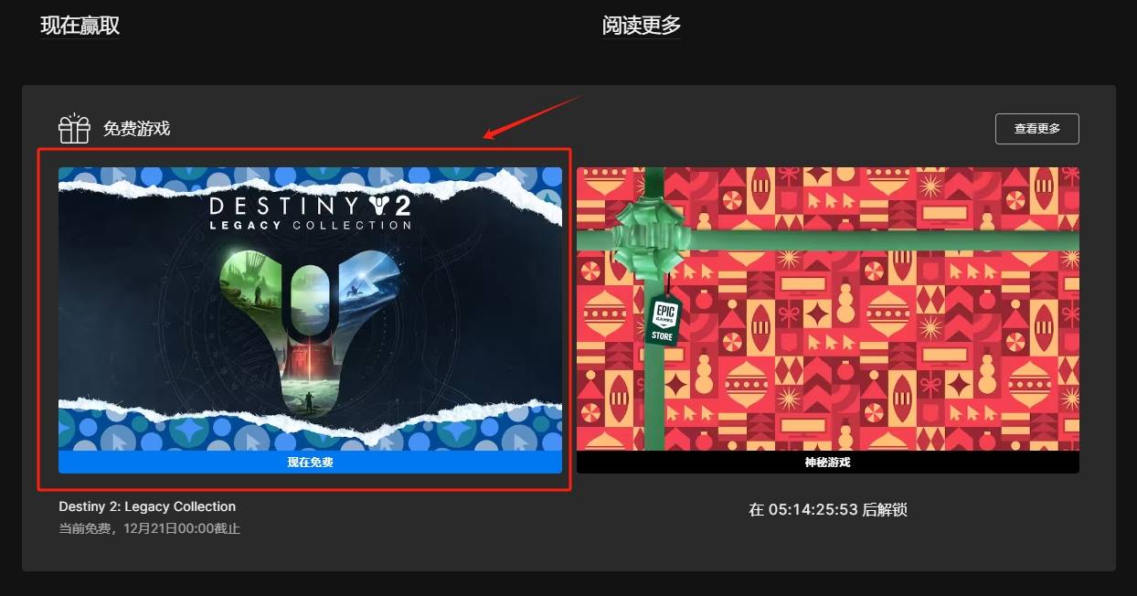现在打开Epic主页往下拉,就能在“免费游戏”这一栏找到当前白送的《命运2 传奇收藏》。