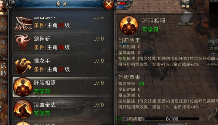 最后,我们来说说结拜兄弟组队。这是一种更为亲密的组队方式,兄弟们在结拜后,能够学习到独特的结拜技能——肝胆相照。这一技能不仅能够提高经验加成,还能带来金币加成的福利。最低都有1%经验加成和2%金币加成,这种福利无疑让结拜兄弟们在冒险之路上更加得心应手,相互扶持,共同面对挑战。