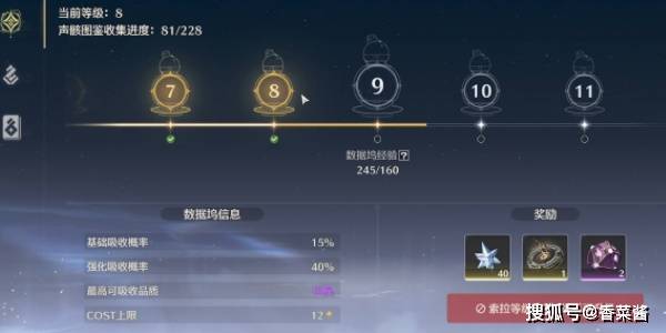 1、首先要明确,我们提前获取一个金色声骸的目的是什么,鸣潮不同于崩铁不同于原神,他有一个数据坞系统,获取高品质的声骸可以增加提升数据坞的等级。