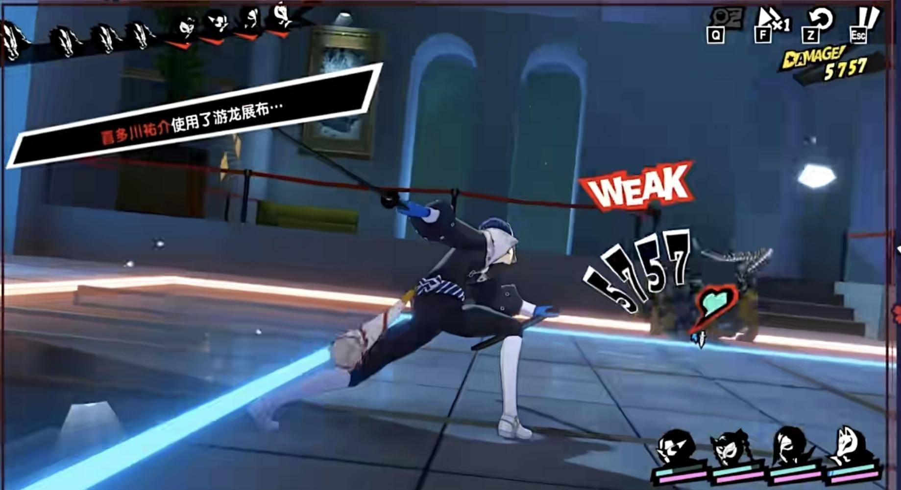 接下来看看穷哥的技能,其中【寒气击破】是群体冰属性AOE伤害,可以对主目标附加一个冻结效果,【拟霜流连斩】是一个多次群伤攻击技能,会对随机敌人造成5次基于一定防御力的冰冻伤害,这个时候如果我们带有护盾,还能有额外增伤!【银华残心】是喜多川祐介的核心技能,可以强化下一次的游龙展布,100%打出反击,强制嘲讽的同时,还能消除自身弱点,额外获得护盾等等,最重要的是,技能动作真的超帅!最后HIGHLIGHT也能提升反击的概率,关键是持续三个回合,对整体伤害提升还是有效的!