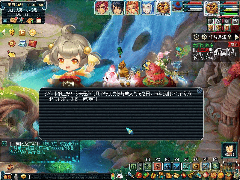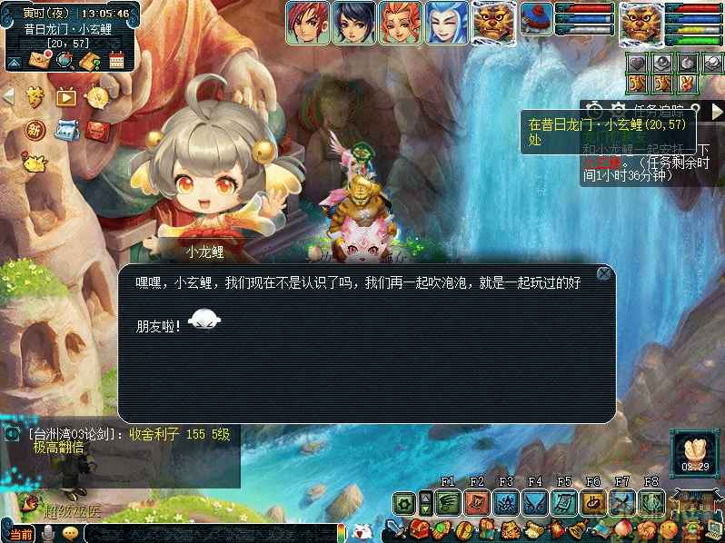 1.活动期间,玩家(≥50级,满5人组队)可以在长安城(224,123)龙鲤处领取任务。