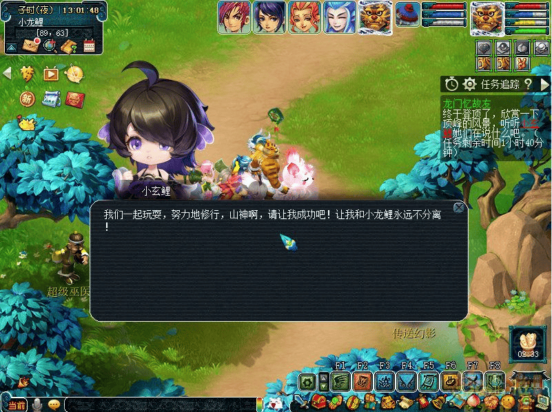 1.活动期间,玩家(≥10级,单人)前往长安城(224,123)龙鲤处选择“携手共郊游(挂机)”进入昆仑仙境修行,每3分钟可获得一次经验奖励,每天最多100次。