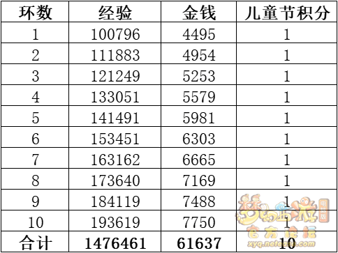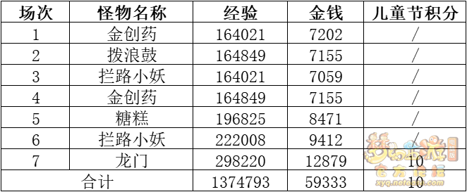 2024儿童节全部玩法金钱奖励提升50%,经验奖励提升100%,其中的经验加成也作用在携手共郊游(挂机)中,也就是说使用九霄清心丸挂机可以获得4倍经验奖励,少侠们可一定不要错过。