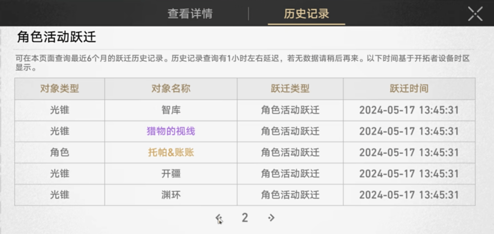 原来这是一位2.1版本末尾入坑的玩家,他在白嫖到五星限定角色“真理医生”的同时,用开荒和送的星琼捞到了2.2版本里进入卡池的托帕和知更鸟。