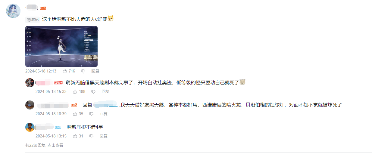 实际上,如今入坑的萌新的游戏体验真的非常的棒,他们除了可以用自己的阵容来挑战敌人外,在大世界和副本遇到难打的敌人时还可以借好友的角色来通关。像是黑天鹅可以自动挂奥迹,低级别的怪物还没动手就已经死了,这种体验,老玩家开荒时期可是没享受过的。