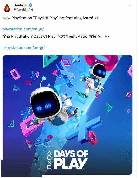 博主@Genki_JPN发现了该促销活动的宣传图,其以宇航员小机器人为主体,并带有Days of Play字样。对此,有网友猜想,会有新的宇航员机器人游戏推出。