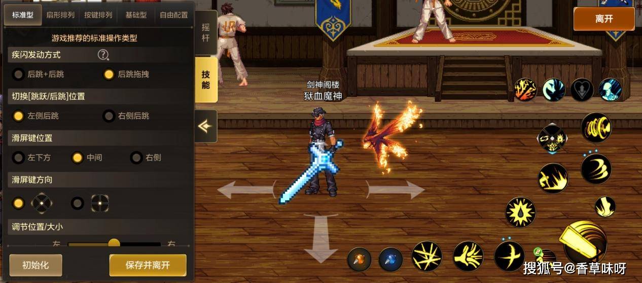 比如下图为标准型、扇形排列的界面,主要区别是跳跃与后跳键位的变化。