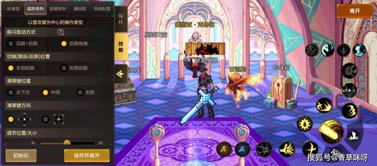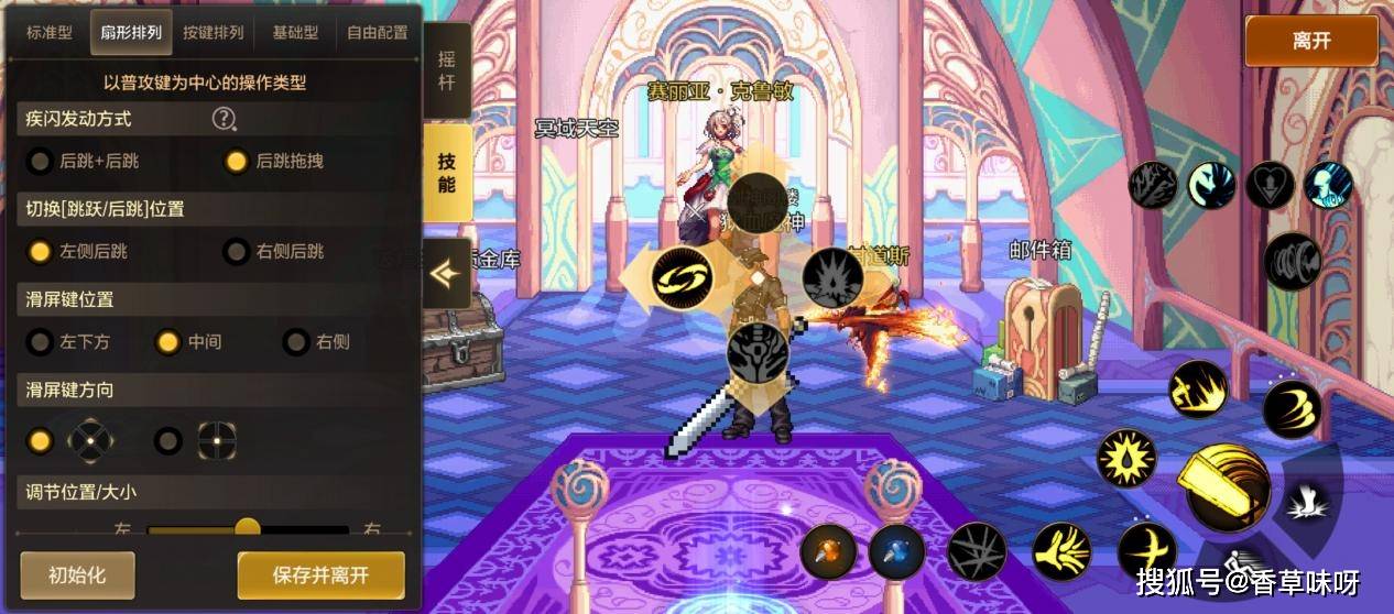 技能(栏)调整方面选择更多,也有更多可调整的空间,其中分为标准型、扇形排列、按键排列、基础型与自由配置。