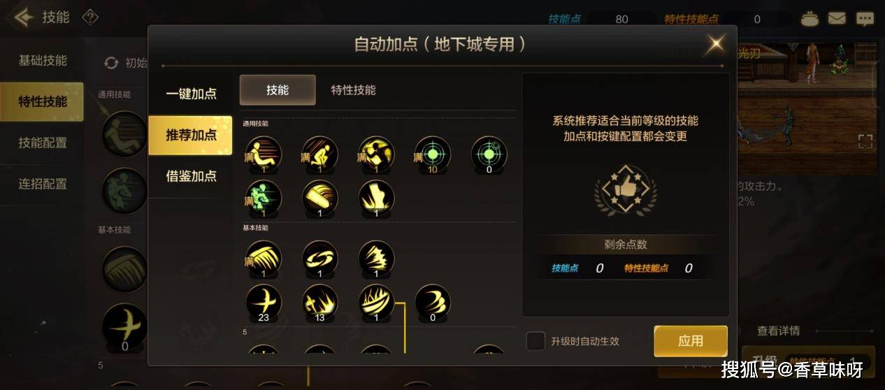 因此个人推荐,加点方面直接选择自动加点(自动加点会加满大招无色,只有转职前的小技能根据职业加的不同),然后根据自己的喜好与习惯进行小技能的微调,省时省力。