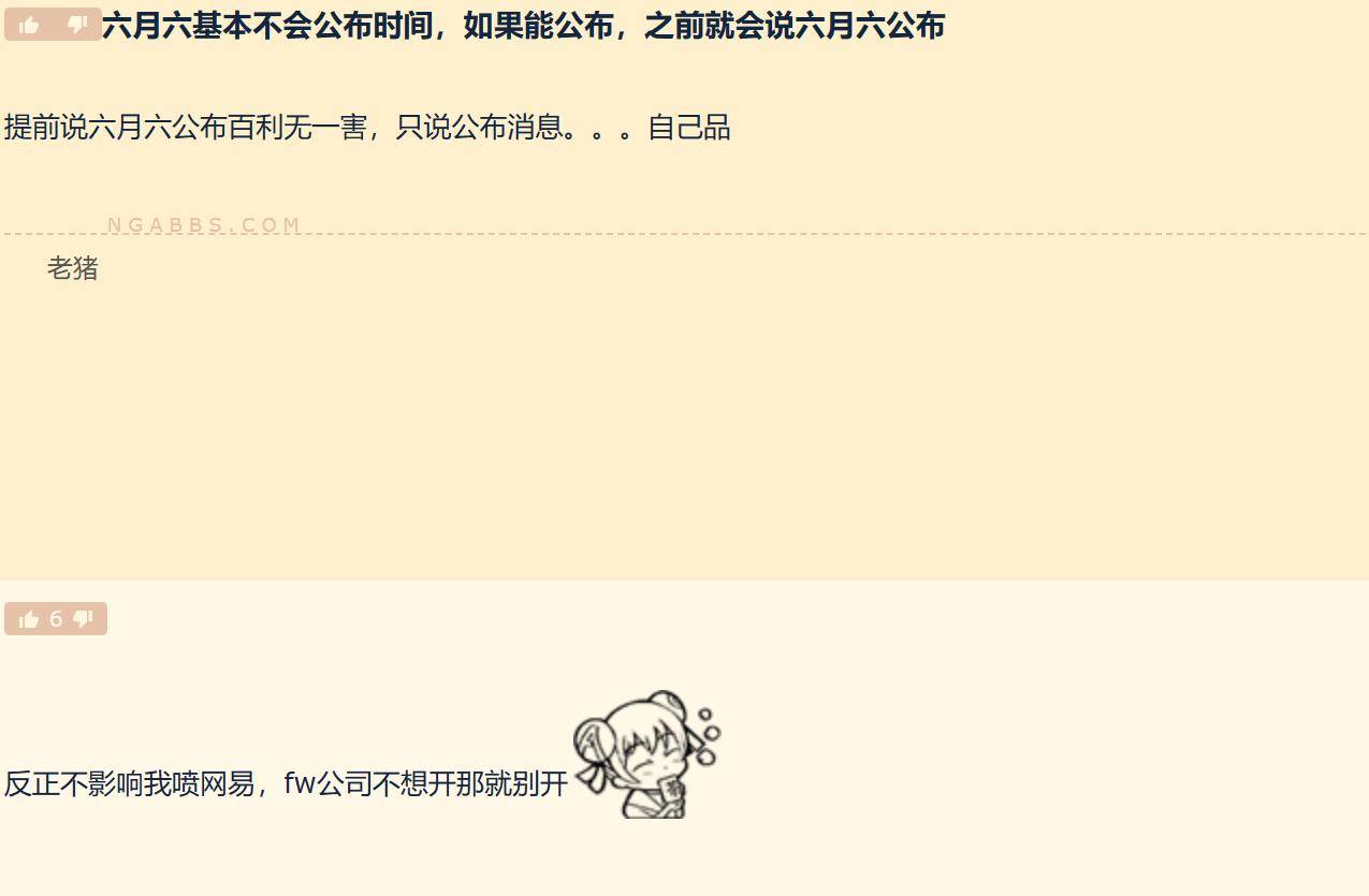 从目前来看官方确实从来都没有说过6月6题将会公布开服时间,而关于6.6公布开服时间很可能只是玩家们的一厢情愿而已,毕竟官方账号也说了会为大家带来更多国服回归的消息,自始至终没有说过将会在6月6日进行公布时间,以此为前提的情况下农工觉得那个大兄弟预言说6.6不会公布开服时间也有一定道理。