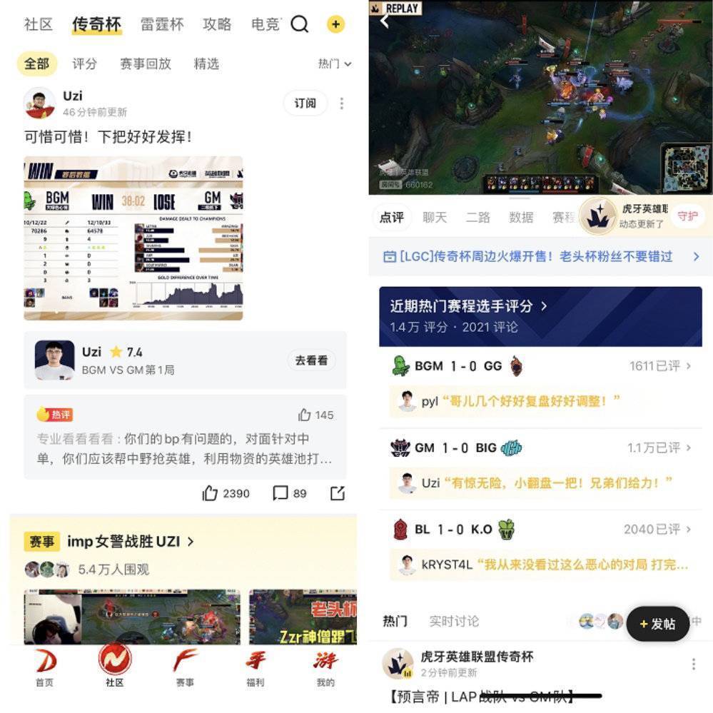 为了提升观众的观赛体验,虎牙直播APP在虎牙英雄联盟传奇杯赛事中引入了诸多特色功能,如为赛事开辟了独立的讨论区,全面聚合赛事热点、选手动态、短视频和官方资讯,给观众提供了深入交流、热情互动的专属平台。此外,虎牙直播APP还推出了评分卡片功能,观众们可以全方位、多角度地对参赛选手进行精彩点评,这一功能不仅大大提升了观众的互动乐趣,更让粉丝们全面地感受到选手们的风采。