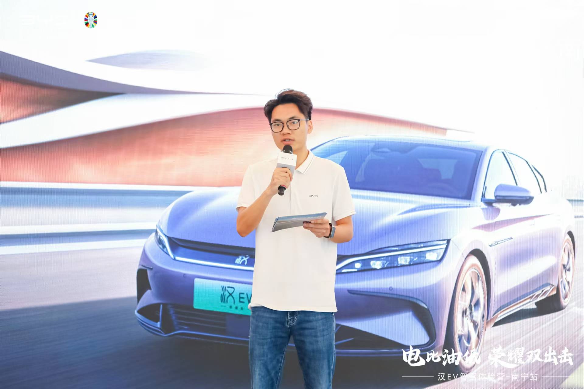 比亚迪汽车王朝网粤桂琼战区广西大区运营经理黄耀俊在本次体验营活动中表示,汉EV荣耀版天神之眼四驱智驾型作为比亚迪王朝网首搭天神之眼的旗舰纯电轿车,是比亚迪在主流中高端市场智能化布局的核心战略车型,未来将以其卓越的整车智能实力,为用户带来越级的智能化用车体验。