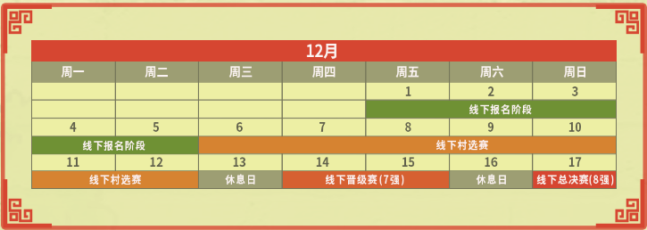 在经过了激烈的线上线下选拔赛后,全村荣耀|梁河村GAME决赛将于12月17日盛大开战,四支通过重重选拔后脱颖而出的战队将在决赛的舞台上进行激烈的对抗,以夺取最终的冠军荣誉,获得丰富的奖金与最高的荣耀。