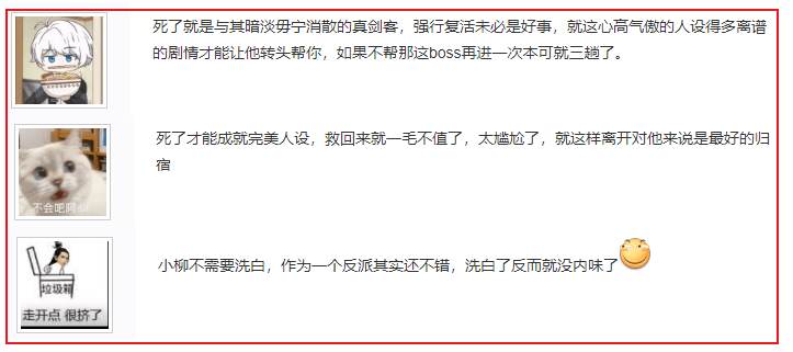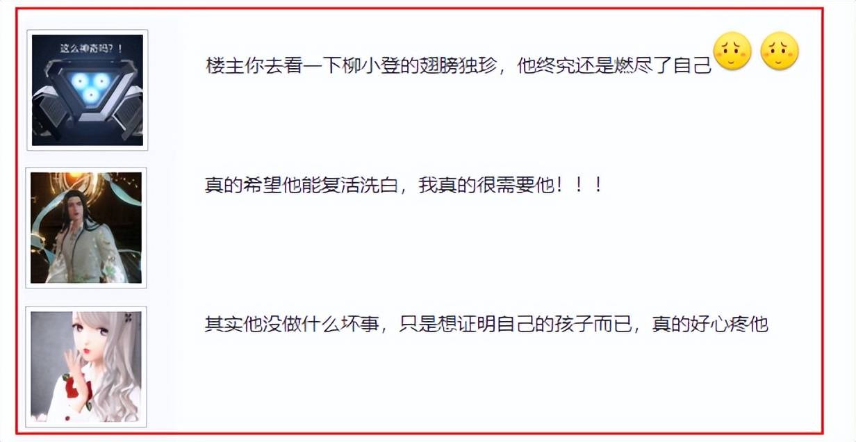 上万条请愿复活建议刷屏,但其中也有玩家担心柳星闻在剧情中的BOSS,如果复活出现在大家的侠缘中,就意味着成了大家的江湖友人。对于柳星闻如此高傲的人来说,这无疑于是OOC,生怕如今的结局被魔改。