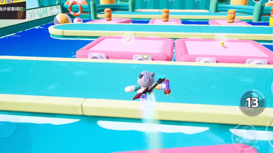 梦幻岛的地图设计同样遵循了派对游戏的特点。比如,地图中的水上乐园区域融合了经典模式中的一些设定,如大炮、水上滑梯和喷泉等。这些元素为游戏增加了更多的随机性和不可预料性。