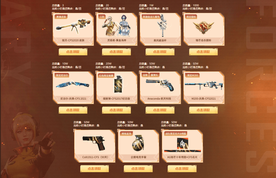 与此同时,CFS总决赛的观赛福利也是再加码!在12.9日—12.15日期间上线登录,通过游戏一局或者观赛等方式获得领取次数就有机会领取全新首发的Anaconda-航天科技,以及毁灭-CFS2020皮肤、灵狐者-黄金海岸等稀有道具啦!福利活动真的是越来越好了,小伙伴们可不要忘记参加哦。