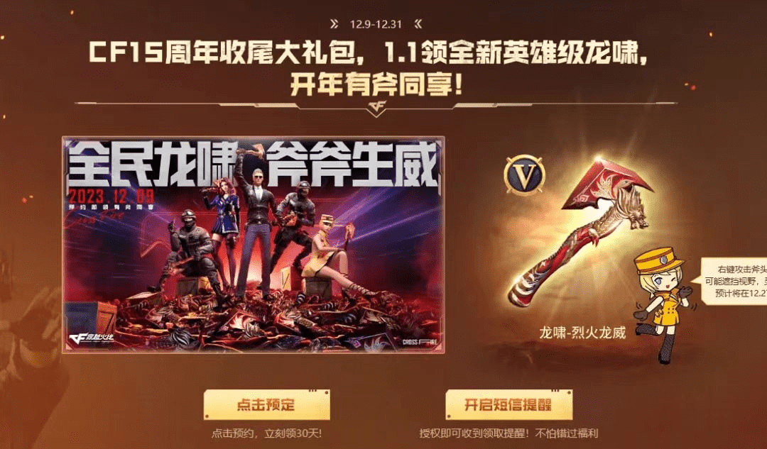 最后还是要提醒大家的是龙啸-烈火龙威已经可以预约了,MP5-破浪十年以及各种稀有道具也可以上线领取了。快来体验一下,跟小伙伴一起讨论全新武器的表现如何吧!