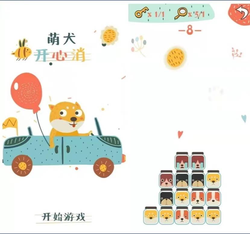 它主要的玩法就是消除,可爱的狗狗被困在瓶子里面,你需要用心思考分析并且敏锐观察,然后在有限的步数内解救出所有的狗狗。