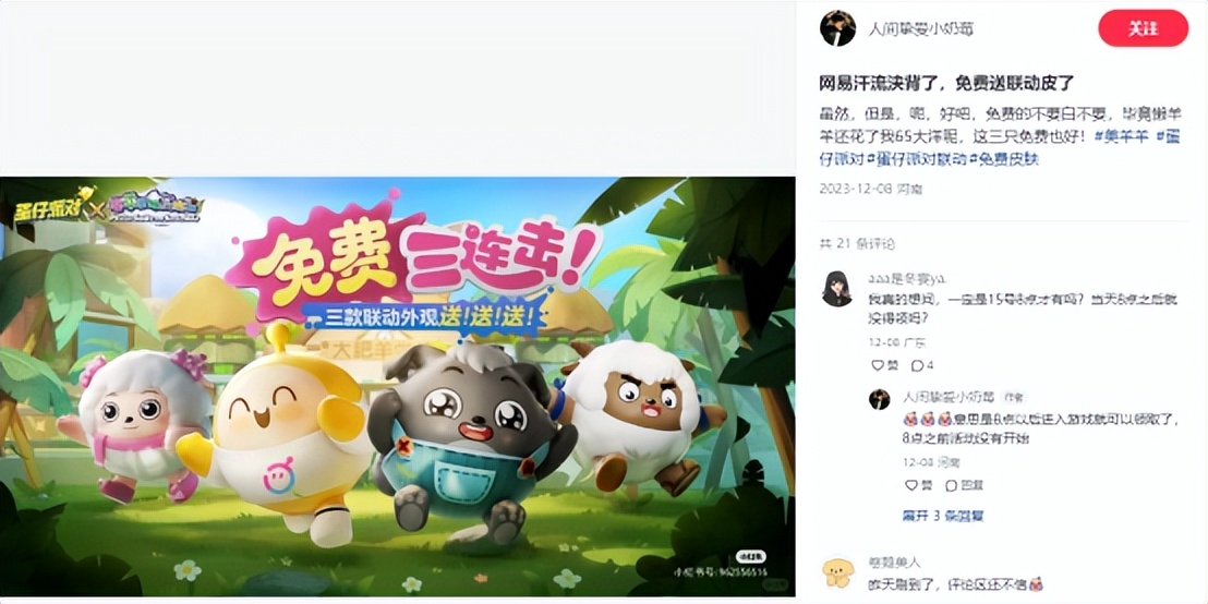 但是蛋仔玩家参与后却直呼上当,说是送皮肤实则是长达三周的任务月卡,甚至还有氪金玩家表示自己遭到背刺,充分展示了蛋仔策划到底有多情不愿发福利。