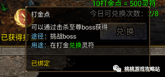 通过击败BOSS,友友们可以获得打金点,然后就可以在上面的界面兑换啦~最后再提醒一遍友友们,打金点每日清空,记得及时去兑换哦,千万不能白白浪费咯~
