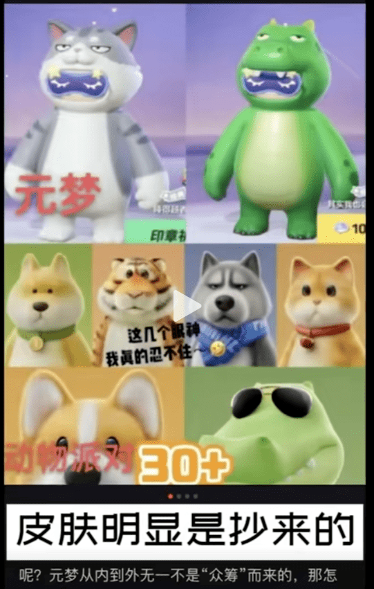 这些质疑的声音从各个方面全方位质疑了元梦之星,首先他们质疑了元梦之星时装上抄袭了蛋仔派对,首先动物时装在现实中都是广泛存在的,蛋仔派对率先推出不代表就可以垄断派对游戏推出动物时装的特权,所以动物特征是无法成为鉴定抄袭的方向。因为人性服装只有部分元素相同在设计上是完全有可能的,用抄袭的声音质疑元梦之星的原创设计未免过于刺耳了。