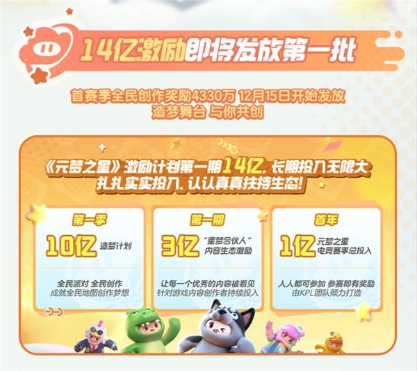 随着《元梦之星》的正式上线,我们可以看到官方的动作可谓是接连不断,不仅仅官宣了《元梦之星》激励计划第一期,第一期激励计划将投入14亿,其中包括第一季10亿造梦计划,第一期3亿“星梦合伙人”内容生态激励,首年1亿元梦之星电竞赛事总投入等等,无论是职业玩家,还是普通玩家均可有机会获得奖励。同时我们还注意到官方还官宣了时代少年团成为《元梦之星》初星代言人。