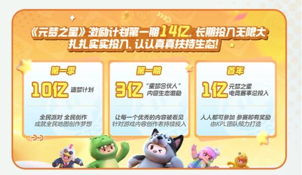 同时我们还注意到这一次腾讯可谓是想要耗费巨资打造元梦之星,从官方了解到,官方已经开启第一期的激励计划,这一次一共将斥资14亿认认真真扶持《元梦之星》生态,第一季将花费10亿打造造梦计划,玩家们可以自己DIY地图,成为造梦师,共同瓜分10亿。同时官方还将花费3亿来扶持“星梦合伙人”,用以激励元梦之星内容生态,让每一个优秀的内容都被看见。除此之外,官方还将在电竞赛事方面投入1亿,人人均可参赛,参赛就有奖励,据了解这一次的电竞赛事将由KPL专业团队倾力打造。